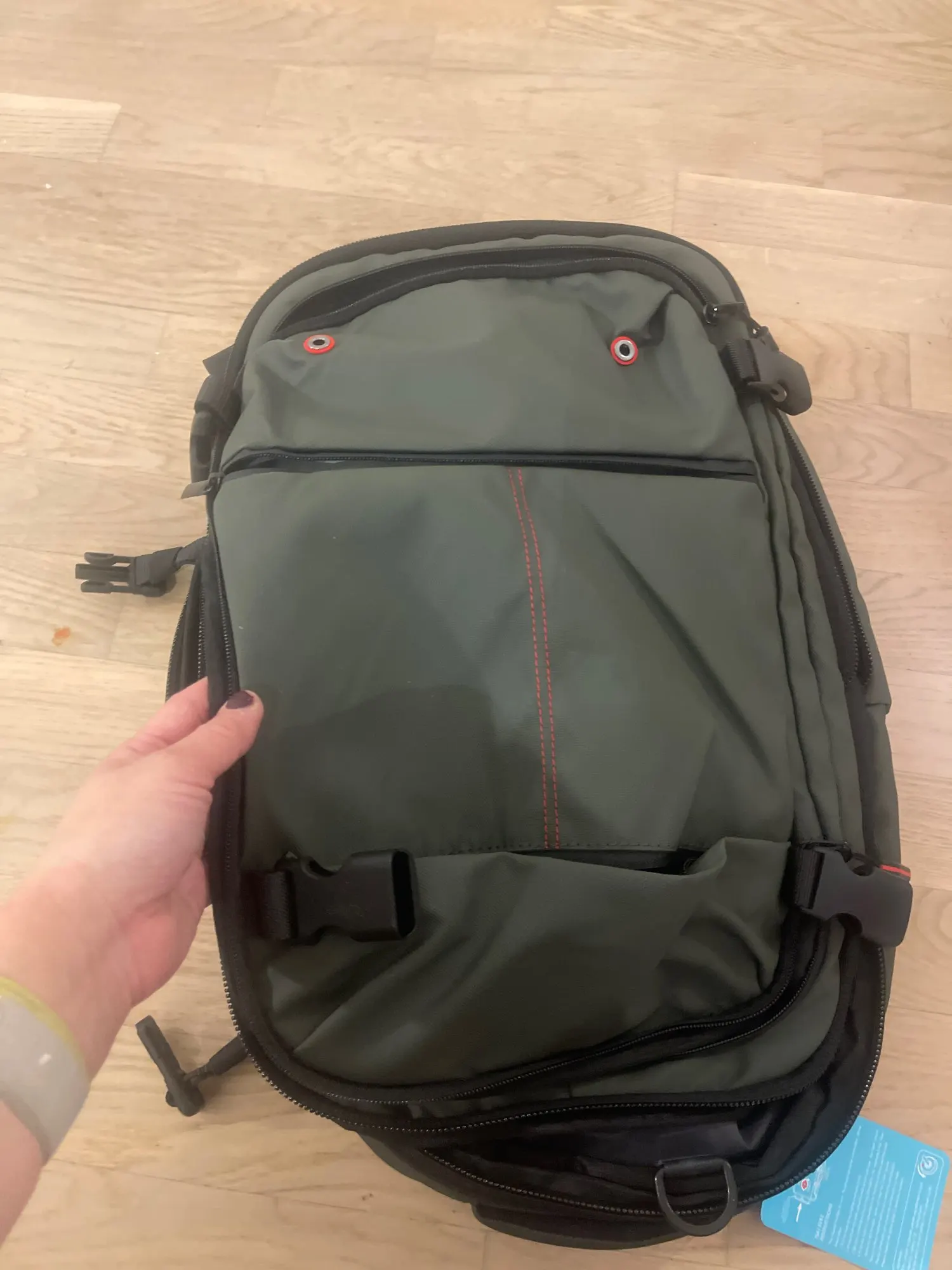 Just received my new travel backpack and i'm impressed. The bag arrived in perfect condition with no damage. It matches the description and photos on the site. I love the design and compact size - not too big, just right. The build quality is great, everything feels solid and well-made. No complaints so far, looks like a great purchase!